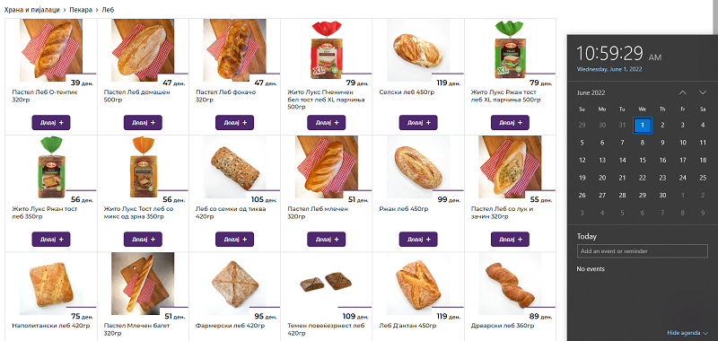 Лебот од 500 грама што вчера чинеше 36 денари, денеска чини 47 денари, додека тост-леб од 500 грама што вчера чинеше 60 денари, денеска е поскап за 19 денари и чини 79 денари. Селски леб од 450 грама кој вчера чинеше 100 денари, денеска во истата продавница се продава за 119 денари.