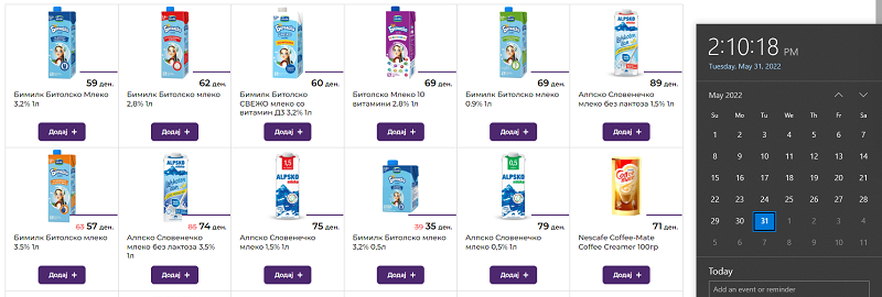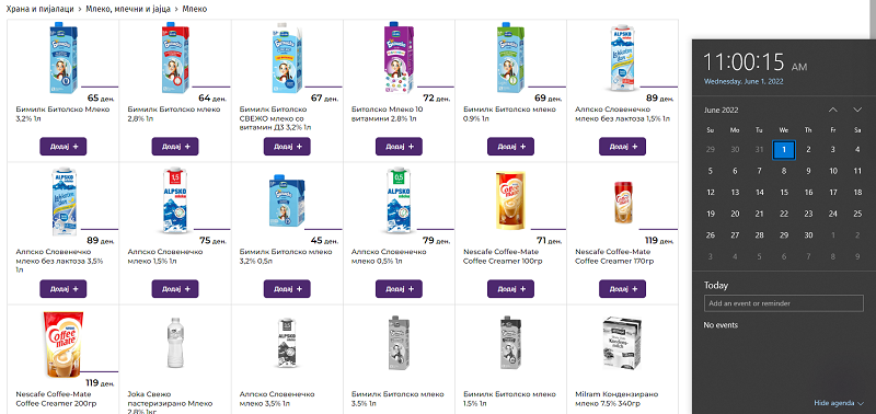 Литар млеко со 3,2% масленост во оваа продавница денеска чини 65 денари, додека вчера истото се продаваше 59 денари.