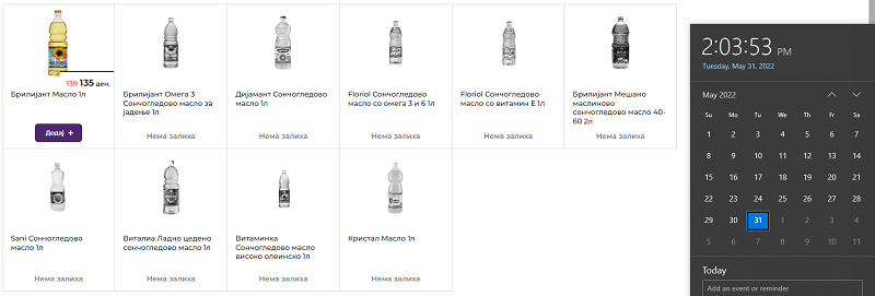 Маслото од 135 преку ноќ рипна на 169 денари, додека јајца денес нема на резерва во оваа продавница, а вчера можеше да се купи само пакување од 6 јајца по цена од 67 денари.