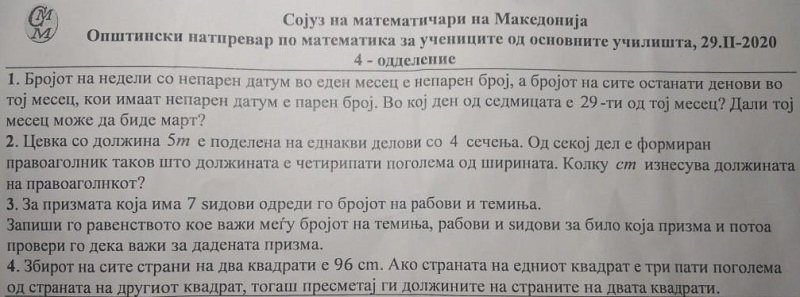 „Вака ли ќе ги мотивираме учениците за натпревар? Треба да си експерт за да ја сфатиш задачата, а не пак да ја решиш! Задачите не се соодветни за деца од 9 години. Ова е општински натпревар, не е олимпијада и децата треба да покажат колку владеат со материјалот и колку имаат логика“ – ова се дел од реакциите на родители и наставници по одржаниот општински натпревар по математика изминатиот викенд во земјава. Родители реагираат и за воведената котизација за учество на натпреварите.
