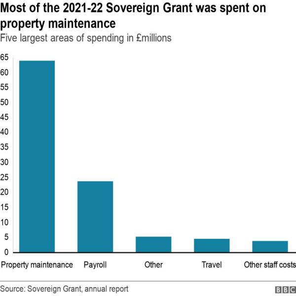 Поголемиот дел од грантот бил потрошен за одржување на кралските палати и платите на персоналот. Минатата година беа потрошени 55 милиони фунти за напорите да се забрза работата на Бакингемската палата пред платинестиот јубилеј - што претставува зголемување од 41 отсто.