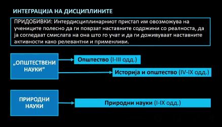 Општествени науки ќе изучуваат учениците од прво до трето одделение, а предметот ќе се вика Општество, а од 4. до 9. одделение предметот ќе се вика Историја и општество. Овој интердисциплинарен пристап ќе им овозможи на учениците полесно да ги поврзат наставните содржини во реалноста, да ја согледаат смислата на она што го учат и да ги доживуваат наставните активности како релевантни и променливи.