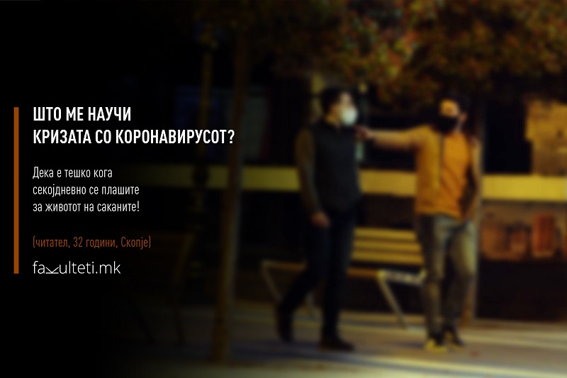 Покрај стравот и паниката, коронавирусот разбуди нови чувства кај сите нас. Многумина сфатија што значи слободата, прошетките со најблиските, кафињата со пријателите, раката на баба на лицето, првото утринско кафе со колегите...