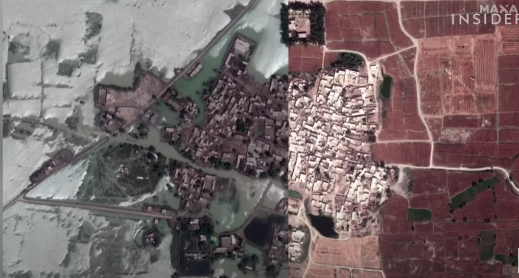 Сателитски фотографии прикажани во видеото подолу го покажуваат нивото на штетата предизвикана од поплавите во Пакистан.