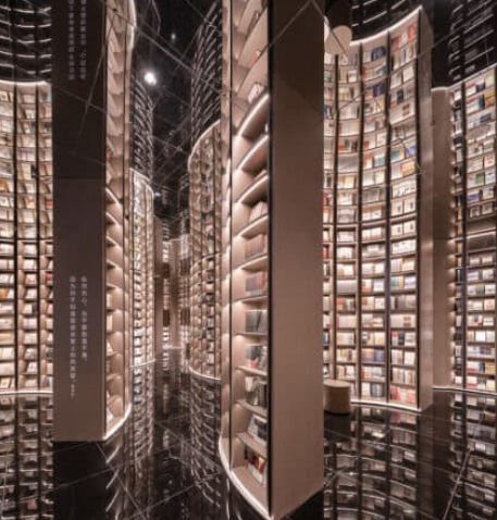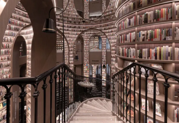 Книжарницата, дизајнирана од архитектонската фирма „Екс+ливинг“, е инспирирана од природниот свет и има интересни закривени полици за книги, скали и високи заоблени врати. Ефектите од овие карактеристики на книжарницата се надополнети со тавани со огледало.