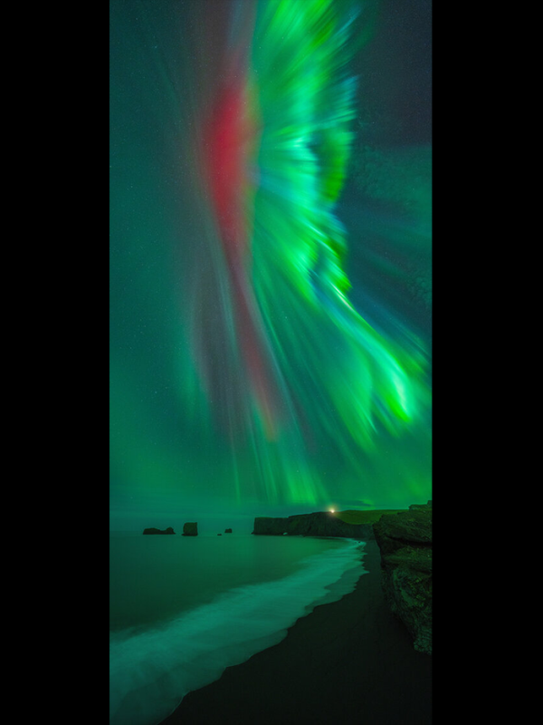 Полуостровот Стокнес во Југоисточен Исланд е популарен меѓу туристите преку ден благодарение на карпестиот профил на планината Вестрахорн, но ноќта претставува уште помистериозен пејзаж.