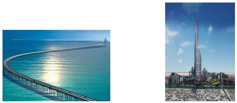 Најдолгиот мост на светот, 164 km, во Кина и највисоката зграда, 163 ката, 828 m, Дубаи (ОАЕ)