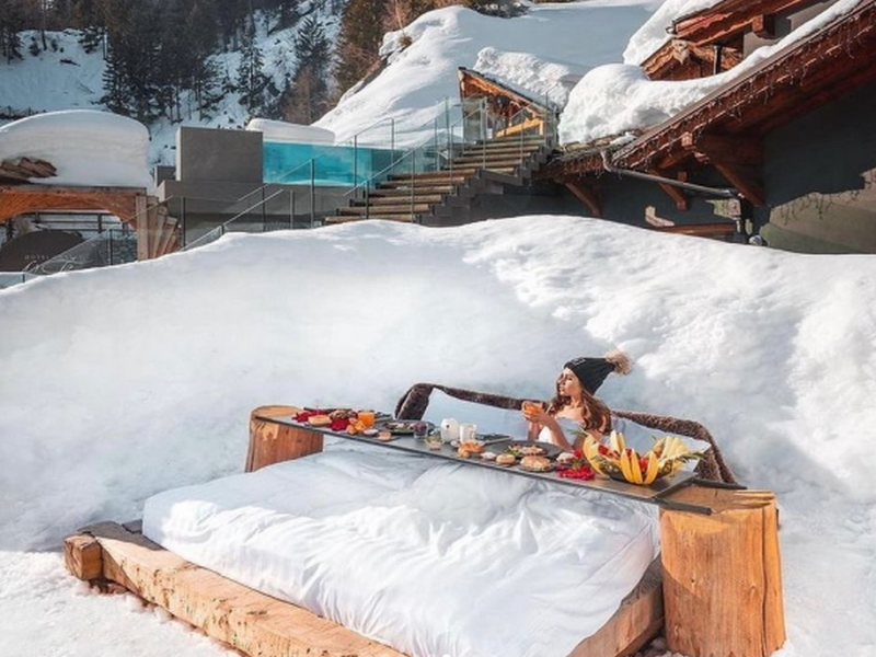 Со седиште во Вермиљо, мал град во Тренто, Италија, во овој хотел ќе можете да уживате во појадокот в кревет, но надвор, во снегот.
