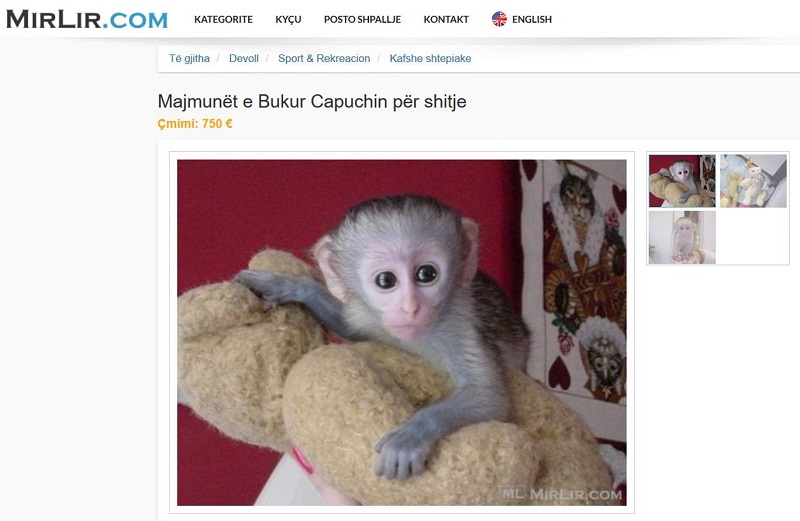 Тоа е профитабилен бизнис - мал капучин мајмун се нуди за 750 евра, додека кукувија, мало мече или волк може да се купат за по 500 евра.