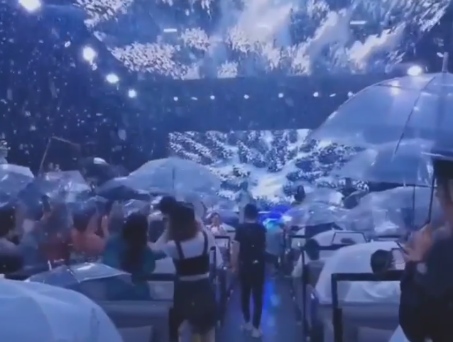 На плафонот се инсталирани и екрани кои го подобруваат искуството. Снегулките кои паѓаат се направени од пена која ги создава машина.