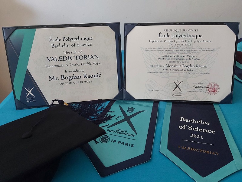 Одличен студент, стипендист на француската влада, ученик на генерацијата и првенец во математичка гимназија, освојувач на многубројни награди на натпревари по математика, Богдан Раониќ го исполнил својот сон и дипломирал на престижната Политехничка школа во Париз.