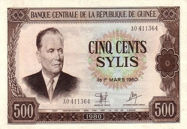 Оваа африканска земја вовела нова валута во 1971 година и ја нарекла сили. Зборот сили на јазикот на народот Малинка значи слон. На својата најголема банкнота од 500 сили во 1980 година централната банка на Република Гвинеја го поставила ликот на Тито, маршал и доживотен претседател на Социјалистичка Федеративна Република Југославија.