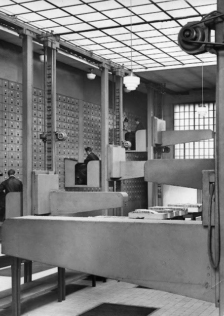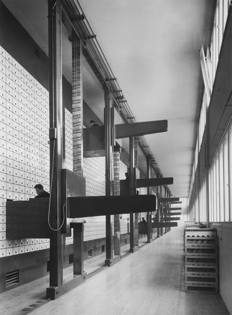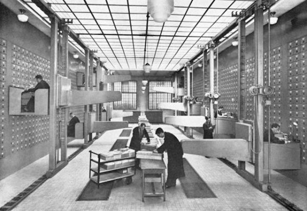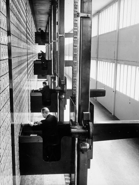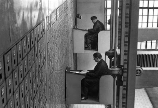 На фотографијата се канцелариите на Централната социјална установа во Прага (тогашна Чехословачка) во 1937 година и во неа се сместени најголемите вертикални кабинети за документација во светот. Канцеларијата се состоела од кабинети распоредени од подот до таванот на повеќе од 370 квадратни метри и содржеле над 3.000 фиоки.