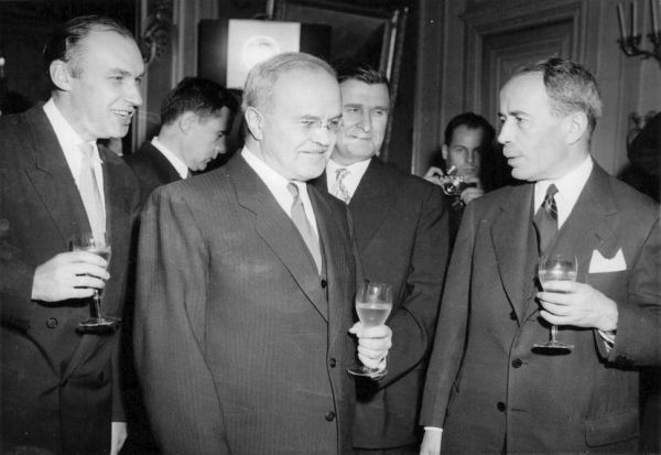Вјачеслав Молотов, советски министер за надворешни работи, со неговиот француски колега Антоан Пајн, на прием на 12 ноември 1955 година.