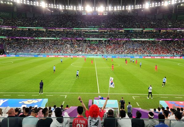 Пред првиот натпревар, стотици навивачи вееја знамиња на земјите од целиот свет, скандираа и пееја по улиците на Доха.