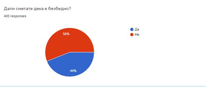 На прашањето: Дали сметате дека е безбедно да славите на плоштад, 56 отсто или 224 анкетирани одговориле со негативен одговор, а 44 отсто, или 176 испитаници одговориле со да.