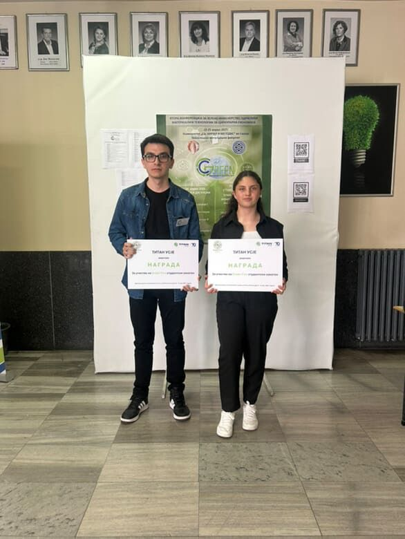 Сара Георгиева и Стефан Голубов, ученици од СОУ „Љупчо Сантов“ – Кочани, се новите млади херои на науката! На престижниот натпревар по наноматеријали, организиран од Технолошко-металуршкиот факултет (ТМФ), со својот иновативен пристап се истакнаа меѓу најдобрите 40-ина тима од цела Македонија. Го освоија третото место и награда од 300€. Нивниот проект беше препознаен по научната креативност и визијата за примена на нанотехнологијата во служба на одржливоста и зелените технологии. Иновативната идеја им овозможи покана за учество на студентскиот хакатон во рамките на конференцијата Green Circ 25 и таму го постигнаа врвот.