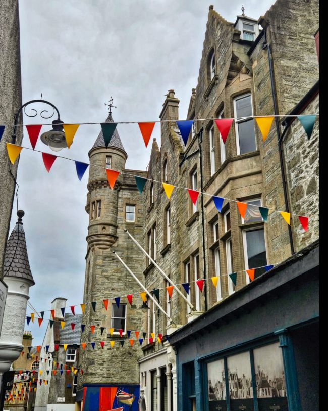 Климата на Шетланд е сурова, со силни ветрови и дождови, но тоа не влијае врз топлината на луѓето и нивните навики и обичаи кои се слични на македонските.