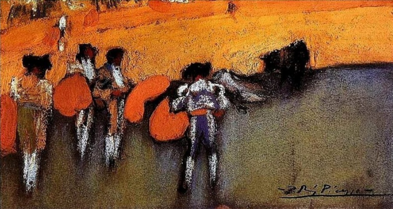 Со оглед на неговото неверојатно рано созревање, можеби не е ни чудо што Пикасо вовел скандалозно нови средства за користење линија, боја и композиција. Тој бил извонреден мајстор на техниката на возраст кога многу уметници биле далеку од формалните студии. Тој ја насликал омилената тема во 1900 година, во лабавата, импресионистичка „Борба со бикови“, еден вид враќање кон неговата прва слика со масло.