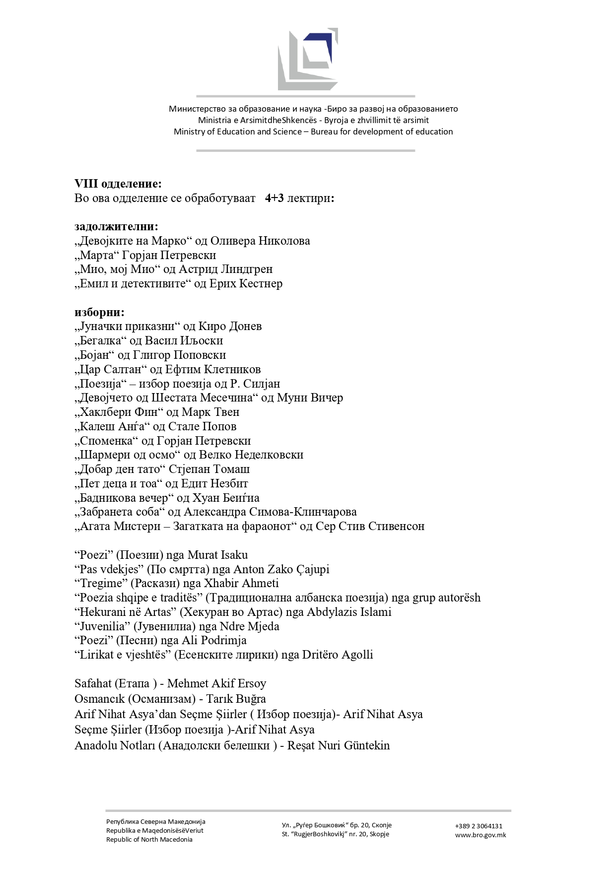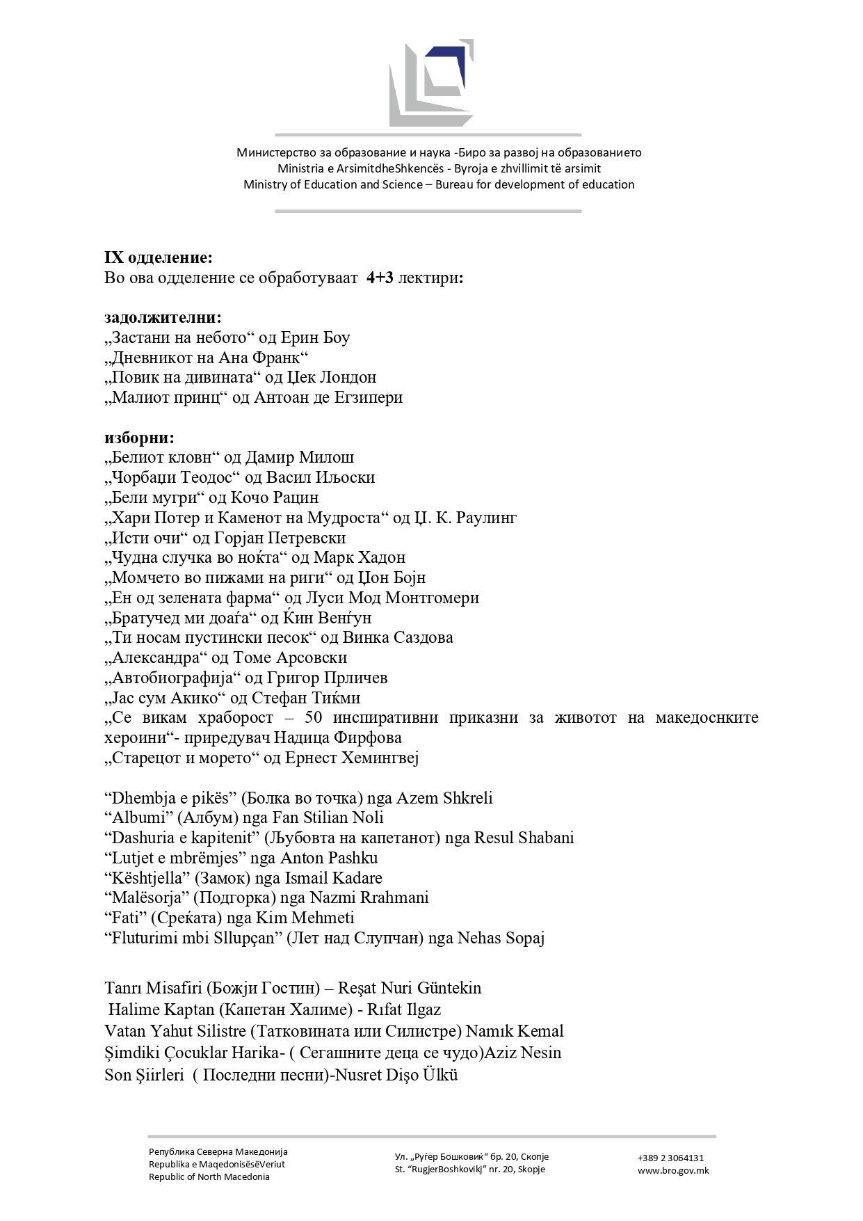 Во продолжение можете да го погледнете предлог-списокот на лектири.