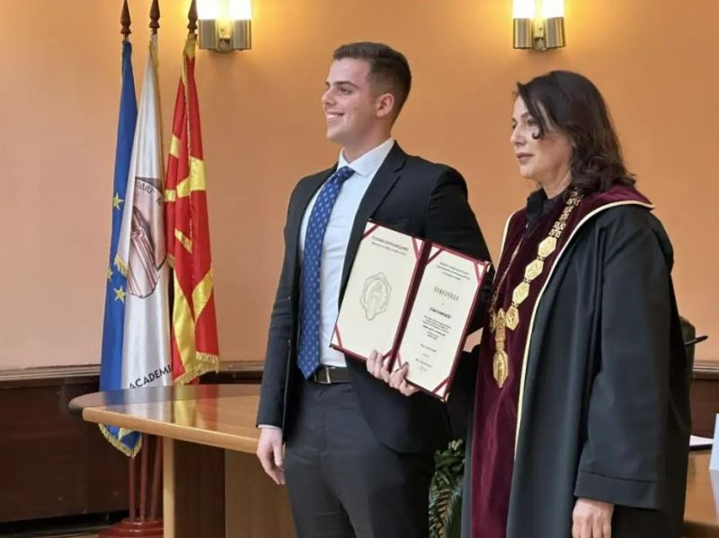 „Си ветив дека максимално ќе се посветам на моето правно образование со цел да можам да му помогнам на секој обесправен“, потенцира Стефан Кофиловски, кој го доби признанието за најдобар студент на Правниот факултет „Јустинијан Први“ за академската 2023/2024 година од страна на Универзитетот „Свети Кирил и Методиј“.