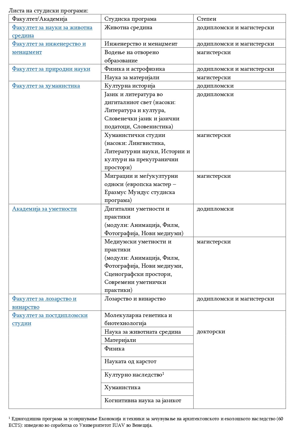 Висококвалитетните студии, индивидуалниот пристап кон студентите и уникатната локација на универзитетот – покрај културно-богатата гранична линија помеѓу Словенија и Италија, ги привлекуваат студентите да студираат овде. Мило ни е што македонските студенти уживаат во својот период на студирање во Нова Горица и дефинитивно за нас е достигнување да слушнеме од работодавците на нашите дипломци кои нашле работни места во нивните родни земји дека ги имаат сите потребни знаења и вештини и дека на тој начин можат да придонесат и за развој на нивната татковина. Затоа, со задоволство покануваме уште повеќе потенцијални студенти од Северна Македонија да ни се придружат и да ги развијат своите силни страни и таленти во нашиот студентско-пријателски универзитет.