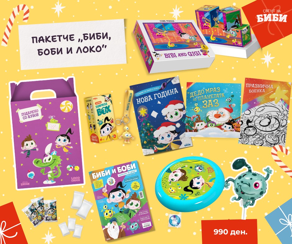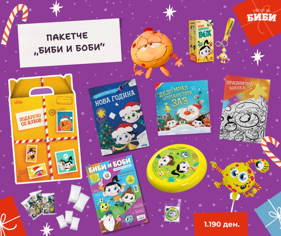 „Светот на Биби“ нуди специјални новогодишни пакетчиња - комбинација од забава, едукација и празнична магија. Со Биби и Боби празниците добиваат ново значење – радост за децата и учење на најважните вредности.