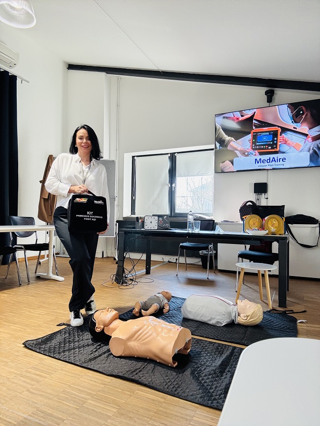 Напредувајќи професионално, станала MedAire Trainer, односно обучувач на кабинскиот екипаж за укажување прва помош при лет. Според европската авијациска регулатива, сите членови на екипажот мора да бидат тренирани за итни медицински ситуации. Обуките се спроведуваат во специјално опремени простории кои овозможуваат практична симулација на сценарија. Таа им дава на пилотите и на кабинскиот екипаж практични знаења и вештини за тоа како да реагираат во итна медицинска состојба, кого да контактираат и како да ја користат достапната опрема на авионот.