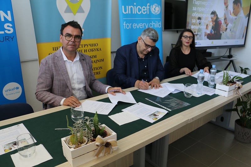 За да се поттикнат вештини за работните места во растечките сектори, средните училишта за стручно образование и обука (СОО) неодамна потпишаа Меморандум за разбирање со шест јавни институции за да се поддржи развојот на зелени вештини кај учениците преку практична настава. Новите партнерства помеѓу средните училишта за стручно образование и обука и јавните институции се резултат на соработката помеѓу УНИЦЕФ, Министерството за образование и наука и Центарот за стручно образование и обука, со финансиска поддршка од Групацијата Нелт и Шведска.