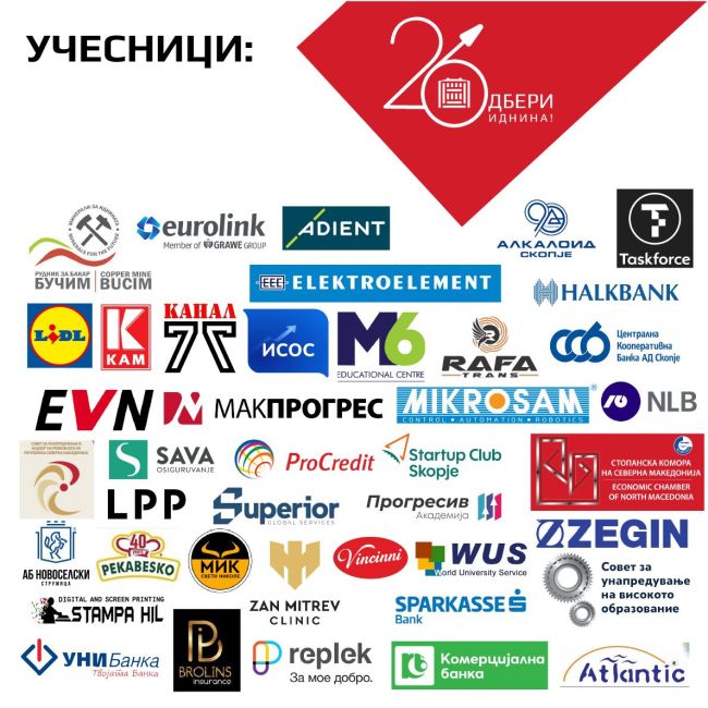 Организации-учесници: „Макпрогрес“, „Винчини“, „Прогресив академија“, „Алкалоид“ АД Скопје, „Реплек“, „Зегин“, ПЗУ Клиничка болница „Жан Митрев“ - Скопје, Халк банка, Уни банка, ПроКредит банка АД Скопје, НЛБ банка Скопје, Шпаркасе банка, Комерцијална банка АД Скопје, Централна кооперативна банка АД Скопје, ЕВН, „Микросам“ ДОО Прилеп, „Адиент сеатинг“ Штип, WUS, „МИК“ ДОО Св. Николе, „М6 Едукативен центар“, Сава осигурување, Институт за овластени сметководители на РСМ, Совет за унапредување и надзор на ревизијата на РСМ, „КАМ“ ДОО, „Лидл“ ДООЕЛ, ФС Штампа хил, Superior Global Service, Сава осигурување, Еуролинк осигурување АД Скопје, ОБД БРОЛИНС АД Скопје, САФЕ ЛИФЕ АД Скопје, Taskforce, Стартап клуб Скопје, Rafa Trans Inc., „Електроелемент Стојмир“ ДООЕЛ Скопје, „АБ Новоселски“, Радио „Канал 77“, ДПТУ „Бучим“ ДООЕЛ Радовиш, LPP, Travel Agency Atlantic DOOEL и др.