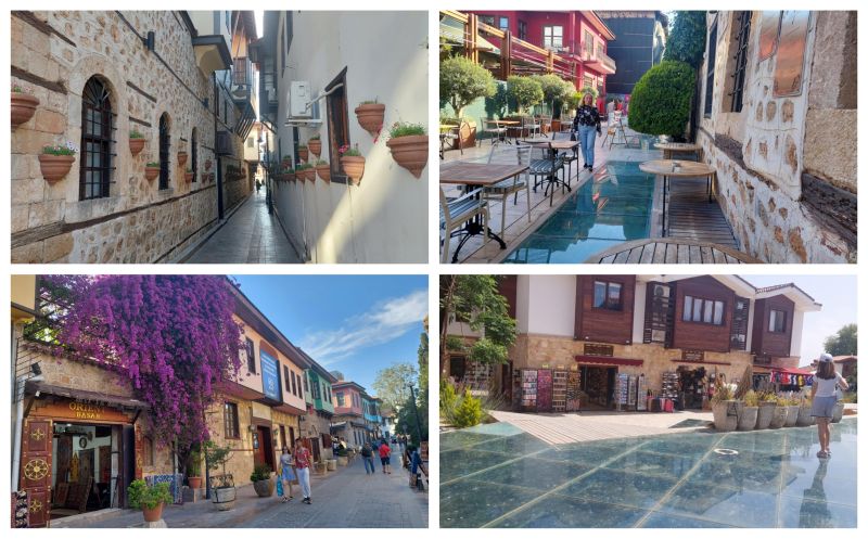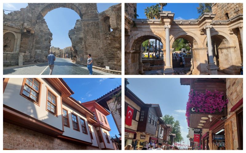 Кога по уживањето на прекрасните песочни плажи ни се присака малку градски амбиент, ги посетивме градовите во близина - Анталија и Сиде. Пријатно нѐ изненади тоа што двете староградски јадра, според градбите на куќите и сокаците, наликуваа на Охрид. Куќите беа со издаден втор кат над првиот, со тесни и високи вертикални прозорци, реставрирани фасади со автентична дрвена, а не ПВЦ-дограма. Градот Анталија го основал Атала Втори во 2 век пред нашата ера и до денес ги зачувал своите бедеми, стари градби. Дел од улиците се застаклени и под нив се гледаат археолошките ископини. Гратчето станува попиторесктно со раскошните бугенвилии со виолетови цветови, јасмини и друга богата вегетација.