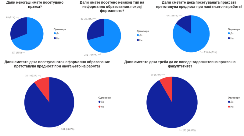 Истражувањето јасно го потврди значењето на неформалното образование и практичната обука како вистинска конкурентска предност на денешниот пазар на труд. Сѐ повеќе работодавци очекуваат искуство дури и од оние што штотуку дипломирале.