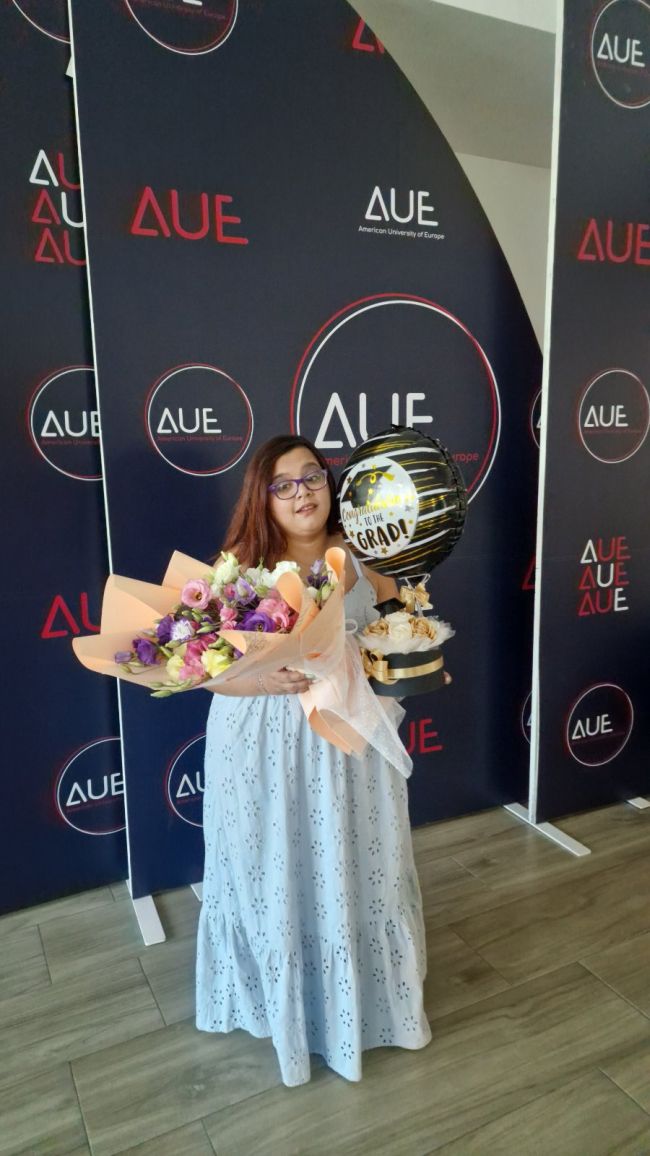 „Марија покажа што значи да се чекори храбро и достоинствено, без отстапување. Твојата сила е инспирација за сите нас! Честитки за дипломскиот труд, твојата приказна нека биде пример за тоа што значи да се сонува храбро и да се оди напред со цврста волја и јасна цел“, објави Универзитетот.