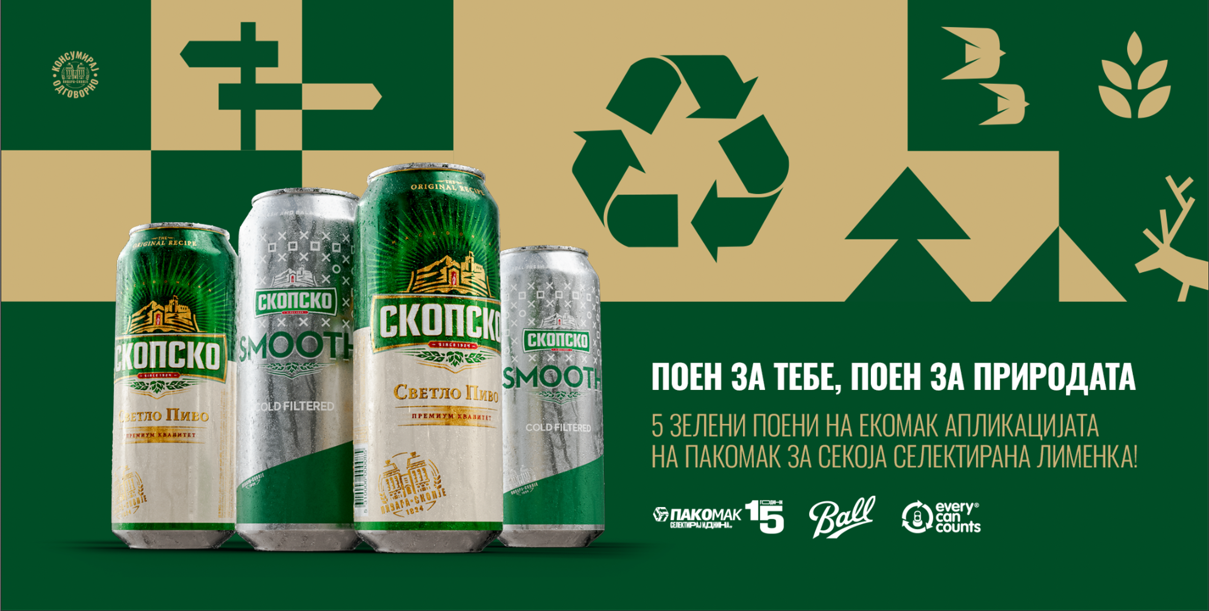 Во рамки на својата општествено одговорна кампања „Наша гордост, наша одговорност“, СКОПСКО и оваа година продолжува да ги мотивира потрошувачите на одговорно однесување и селектирање на отпадот. Во соработка со Пакомак и компанијата за производство на алуминиум Ball Corporation, од 15 август стартува иницијативата за дополнителни поени за секоја селектирана СКОПСКО и СКОПСКО Smooth лименка.