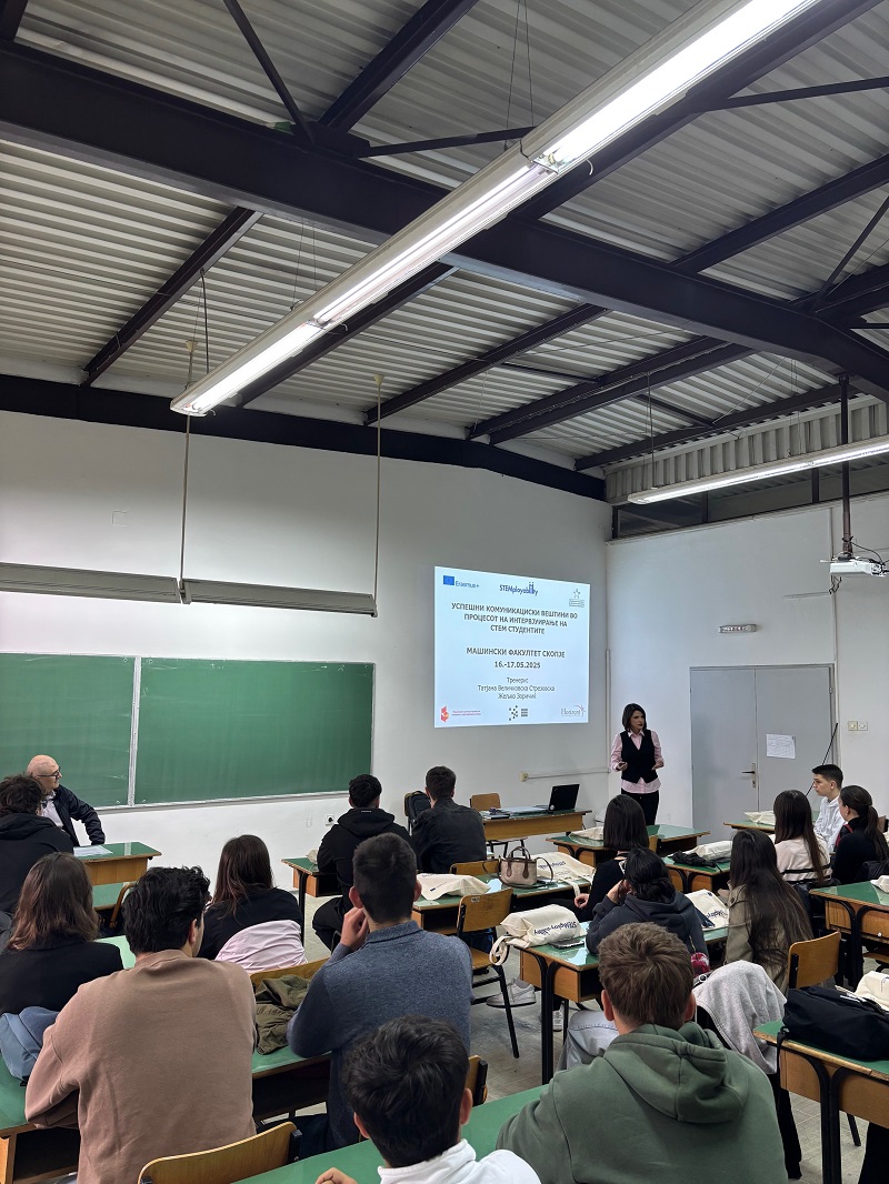 -Како учесничка на обуката на тема: „Зајакнување на вештини за вработување кај СТЕМ-студенти за професионална извонредност“, реализирана во рамките на проектот STEMPLOYABILITY, имав можност да стекнам значајни знаења за креирање ефективно CV и мотивационо писмо и практични вештини за самопрезентација, градење личен и професионален развој, како и ефективна комуникација со работодавци. Обуката беше спроведена на многу интересен и интерактивен начин, со практични вежби кои ми овозможија полесно и поефикасно разбирање и примена на наученото во реални ситуации. Стекнатото знаење ќе ми послужи како цврста основа за развој на мојата кариера и успешно интегрирање во професионалната средина. Искрена благодарност до менторите за нивниот професионален и посветен пристап - вели Деспина Алексоска, студентка на Машинскиот факултет.