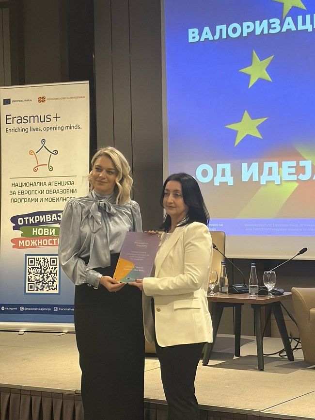 - Наградата ја зацврстува позицијата на ООУ „Кирил и Методиј“ - Стајковци како сигурен партнер за идни Еразмус+ и други меѓународни проекти. Таа отвора можности за нови партнерства, размена на искуства и понатамошен развој на иновативни образовни практики. И од Националната агенција за европски образовни програми и мобилност добивме признание за нашата награда и можност да го презентираме нашето искуство пред други заинтересирани образовни институции - дополнува директорката.