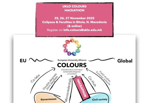 Хакатонот, кој ќе се одвива во Колаборативниот простор на УКЛО и на повеќе локации низ Битола, како и онлајн, претставува дел од пошироката рамка на иницијативите на Алијансата КОЛОРС. Во фокусот се теми од зелена и дигитална транзиција, социо-економска правда, храна и земјоделие - сите гледани низ призмата на интердисциплинарност и соработка.