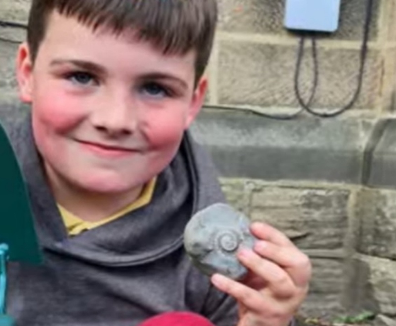 Пред три месеци младиот Елиот копал во својот двор кога наишол на блок од варовник. Откако го отворил, пронашол 180 милиони години стари морски суштества од периодот јура, вградени во каменот.