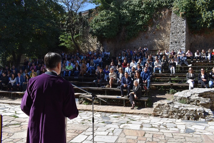Ректорот на УКЛО, Проф. Д-р Сашо Коруновски нагласи дека “образованието е најважниот ресурс на 21век, образованието е нафтата на 21век”. Тој посебно ја нагласи симболиката на локацијата – мудроста која произлегува од учењето и стекнувањето на нови знаења.