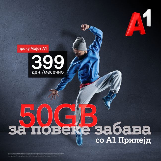 Со новиот месечен припејд 50 ГБ пакет, за само 399 денари корисниците добиваат 50 ГБ мобилен интернет за опуштено сурфање цел месец.