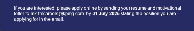 Joining KPMG is a great way for you to gain practical work experience and discover what it is like to be part of a professional team. We will value your ideas, enthusiasm and curiosity and encourage you to develop every day. We look forward to YOU joining and supporting our business growth strategy.