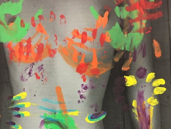 Откако ја фотографирала својата гола пријателка, ја изработила фотографијата во природна големина и врз неа оставила отпечатоци на раце во разни бои кои симболизират допири од разни личности од нејзиниот живот.