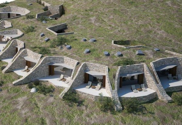 Хотелот е „издлабен“ во ридот кој некогаш бил дом на маслинов овоштарник. Формата и историјата на местото го дефинираа дизајнот. Неправилните ѕидови ја следат контурата на ѕидот и се составени од камења собрани со традиционални градежни техники. Ова го вклучува далматинскиот процес на изградба на монументални камени ѕидови без малтер. Овие ѕидови го обезбедуваат влезот, но големите стакла им овозможуваат на гостите поглед кон надворешноста.