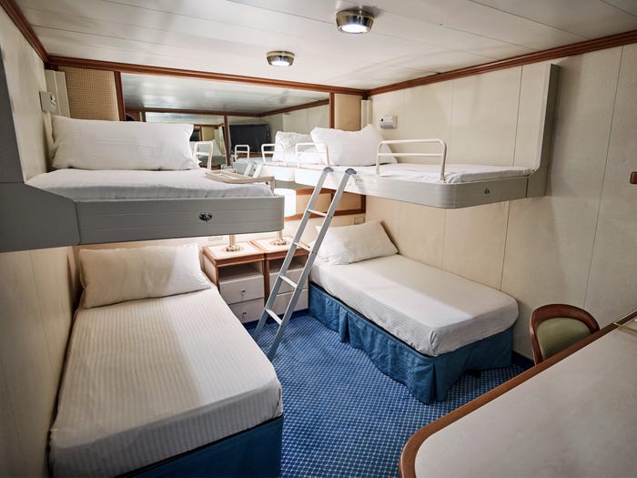 Вработените често имаат по еден цимер, но некогаш имаат и тројца. Нивните соби се едноставно опремени, па има комбинација од кревет, маса, плакар, неколку полици и мала бања. Работниците исто така може да делат бања со оние што престојуваат во соседната кабина или да користат заедничка бања со останатите од целиот кат.