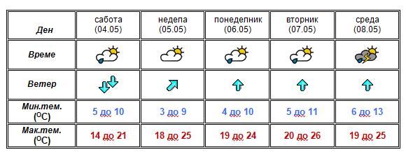 В недела минималната температура ќе се движи од 3 до 9 степени, додека максималната од 18 до 25.