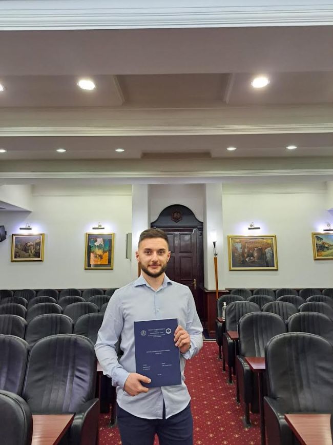 Годинава тој магистрира на постдипломски студии по монетарна економија, финансии и банкарство на Економскиот факултет – Скопје на тема „Монетарна економија на османлиска Македонија, спојувајќи ги економската и историската наука. Стана постдипломец на Филозофскиот факултет во 2023 година на насоката Историја на Македонија во новиот век, а веќе го започна истражувањето за магистерската теза.