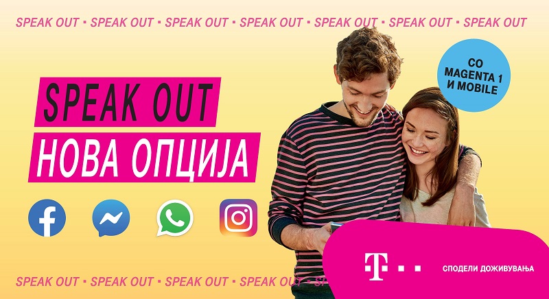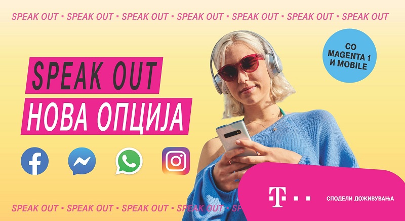 Новата опција Speak Out на Македонски телеком е наменета за нив, за генерацијата која го менува светот и гради подобра иднина преку технологијата. Затоа, оваа опција на младите корисници им овозможува да ги споделуваат своите идеи, да разменуваат ставови, да креираат промени и да останат поврзани онлајн преку најкористените социјални мрежи Фејсбук, Месинџер, Инстаграм и Вацап, без притоа да потрошат од интернет-сообраќајот вклучен во претплатата на нивната тарифа.