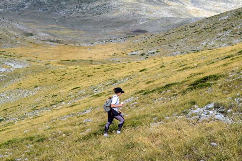 Во 22 часот светилките се гасат и домот се става на нечујно. А штом бликна светлината на денот, тргнавме да ја исполниме нашата крајна цел. Поубави временски услови не можат да се замислат, ниту да се посакаат. Утрото навестуваше бистрина и ведро небо, иако на планина неизвесноста секогаш демне. Низ висок папрат почнавме да ја следиме маркацијата. Првата етапа од патеката води низ густа букова шума. Имаме за совладување 1.000 метри надморска височина, распоредени во 7,5 километри до крајната точка. Косината на планината полека ја газиме и прва пауза е фасцинантната Долна Бабина Дупка, полна со диви малини и раскошен поглед кон Солунска Глава, плус екипа која кампуваше во полјаната со малини. Паузата ни траеше подолго од предвиденото, пред сѐ, поради малините. Тука ги обновивме и резервите со изворска вода и тргнавме да се „чекираме“ кон Горна Бабина Дупка. Полека излегуваме на сртот. Оттука целта ни се гледа јасно како ден. Ги поминуваме гребените под Солунска Глава, односно Нежиловите стени, најфасцинантниот дел од патеката, и ни остана уште една стрмнина. Застануваме да се наполниме со видици, да ги преброиме планините меѓу планините.