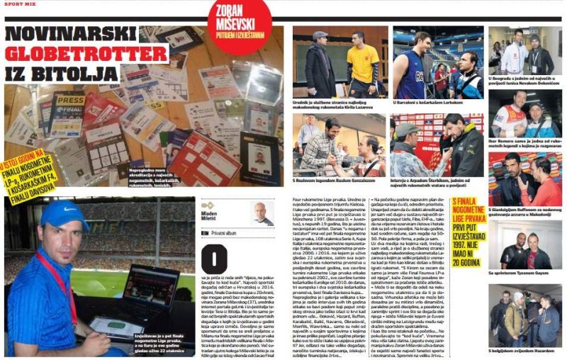 - Имам илјадници настапи, преноси, извештаи, јавувања. Работам настани и од домашниот и од меѓународниот спорт, врвни големи натпреварувања и домашни шампионати. Особено ме инспирираат големите настани и работата од теран. Често патувам и ги следам спортските настани во живо, голема е разликата меѓу натпреварите во живо и пред ТВ-екраните – вели Мишевски.
