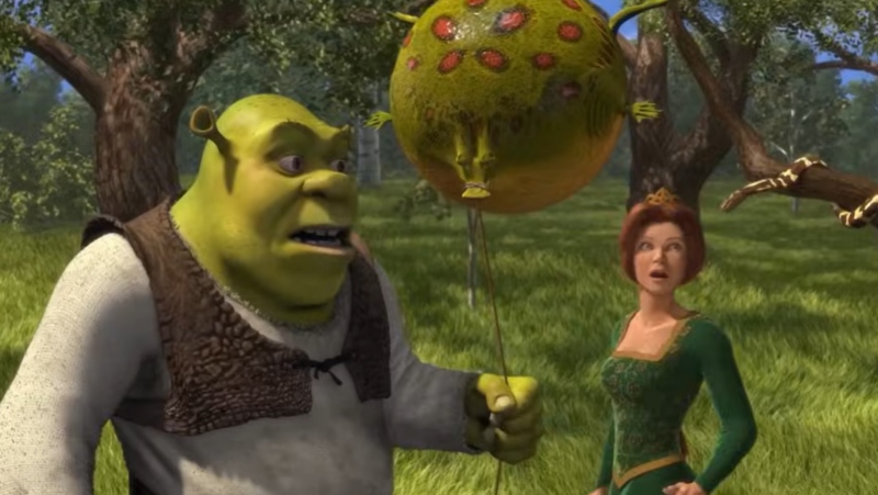 Причината зошто Шрек се појавува во ова е затоа што ако ја погледнете врската помеѓу Шрек и Фиона, Шрек е „грдиот“.